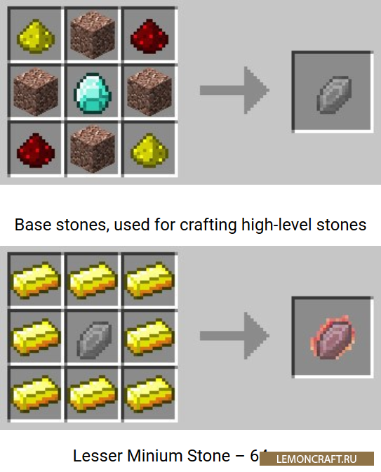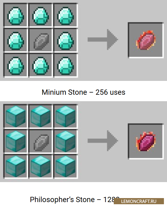 Мод Arche добавляет в игру философские камни, которые позволяют создавать одни металлы из других. Например железо можно превратить в золота, а золото в алмазы. В итоге самые дорогие материалы вы можете получить значительно дешевле чем раньше. Но при этом следует учитывать, что создание философского камня потребует значительных затрат, а при его использовании вы будете тратить жизни.